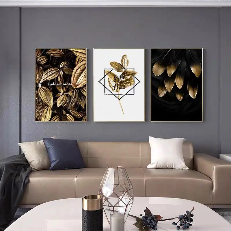 Современная живопись Золотое растение для гостиной, Настенный дизайн, холст, картины для домашнего декора, Постер без рамы, Картина на холсте