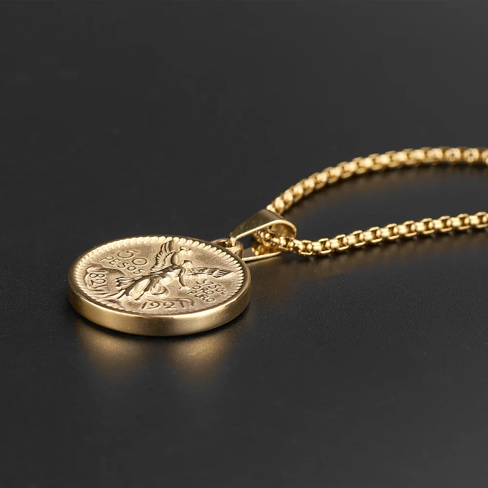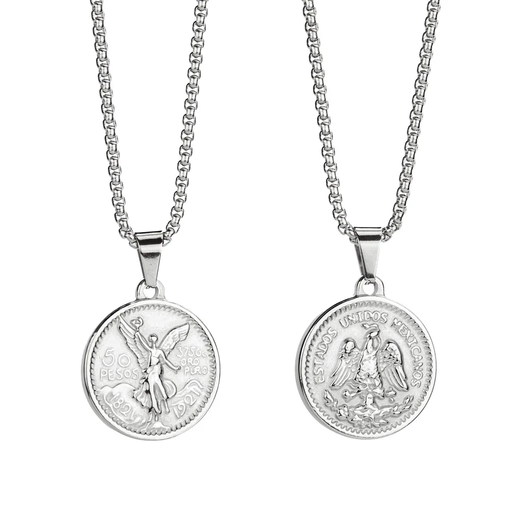 Винтажное ожерелье с кулоном в виде монеты 50 песо, юбилейная Подвеска из титановой стали, ожерелье с кулоном в виде свитера, круглые крылья, подвеска с ангелом, ожерелье