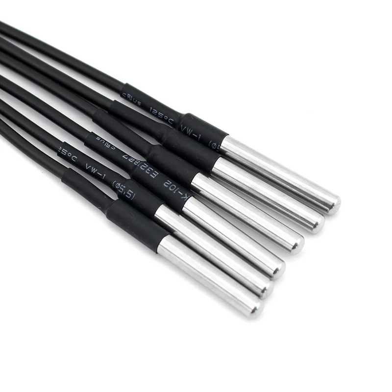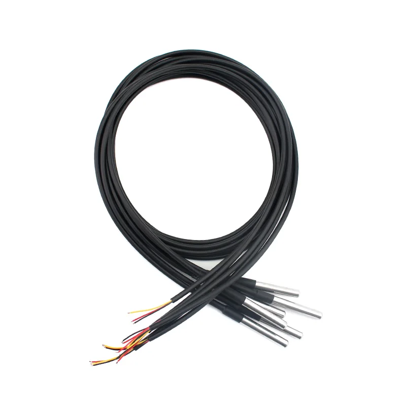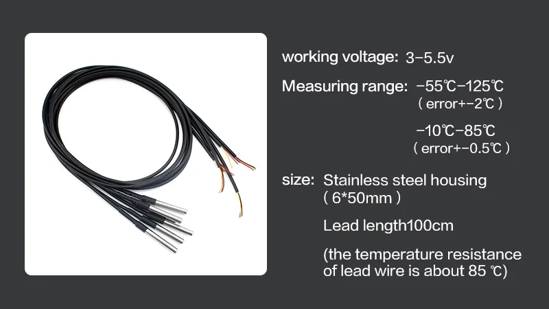 Зонд использует новый чип датчика температуры DS18B20, Каждый штырь чипа отделен термоусаживаемой трубкой для предотвращения короткого замыкания, внутреннего уплотнения клея, водонепроницаемого и влагостойкого
