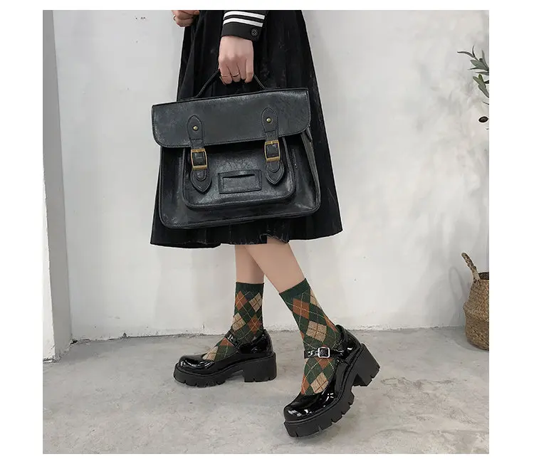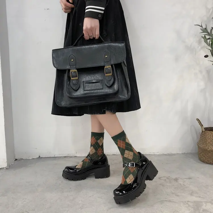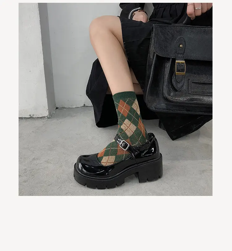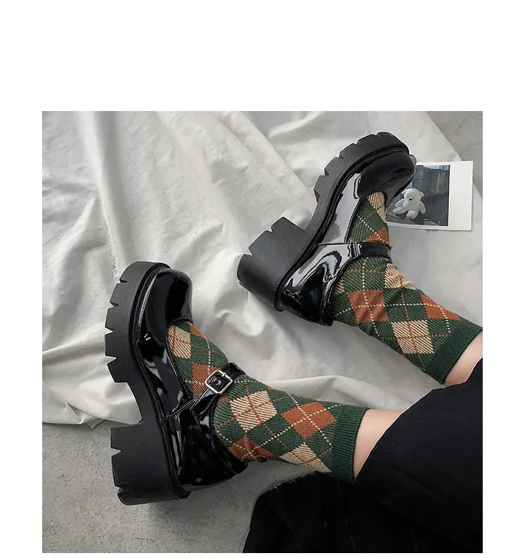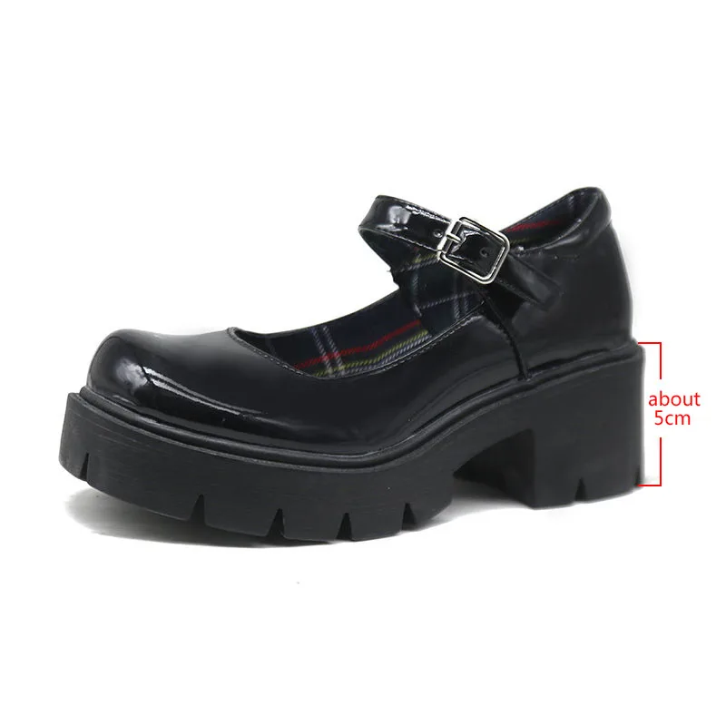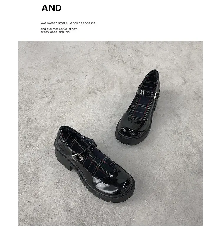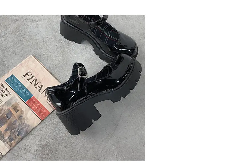 Обувь Mary Jane на платформе Harajuku; Маленькие кожаные туфли для женщин; Коллекция 2021 года; Женские туфли на не сужающемся книзу массивном каблуке с пряжкой на ремешке; Косплей туфли Лолиты для девушек