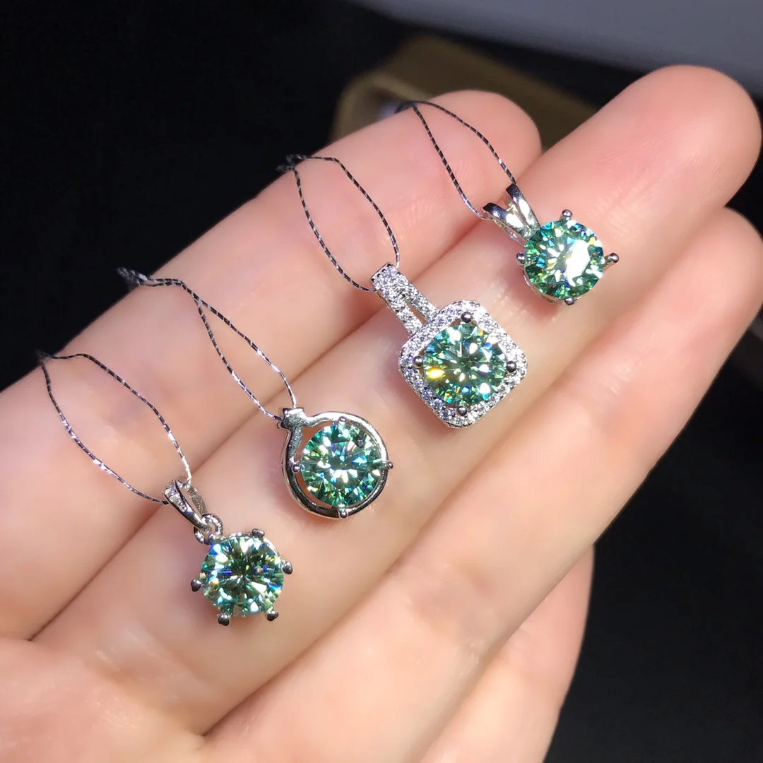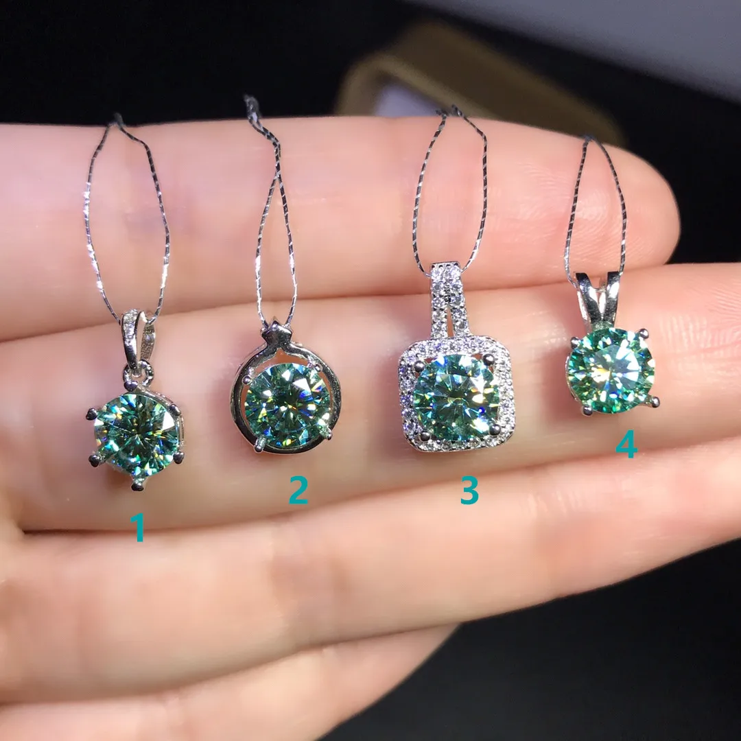 Серебро 925 Оригинал 1 карат алмаз проба мимо зеленый и синий Муассанит квадратная круглая подвеска ожерелье изумруд драгоценный камень Свадебная цепочка