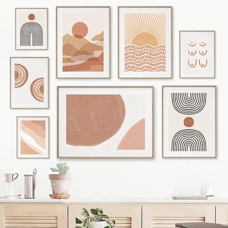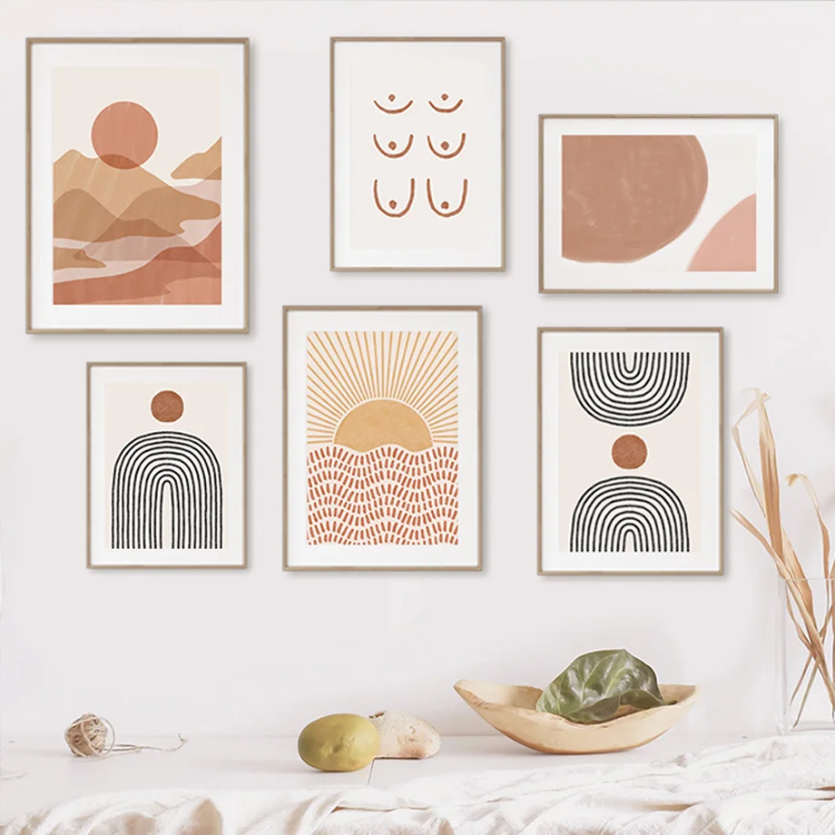 Абстрактные линии формы ретро Солнце минимализм Бохо настенная живопись на холсте постеры и принты настенные картины для декора гостиной