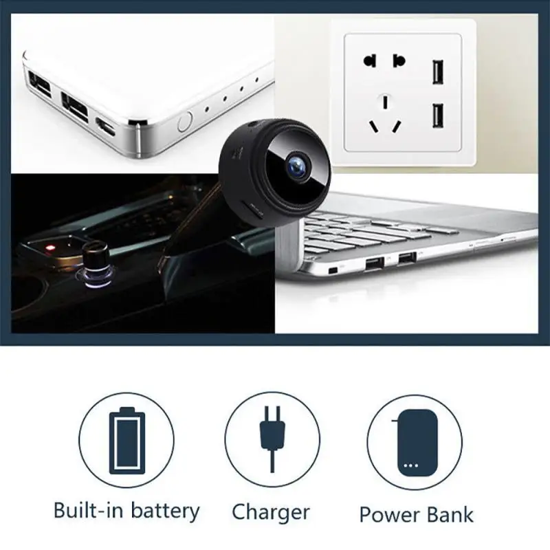 -Эта маленькая ванная комната имеет встроенный Магнит, может хорошо работать с любым железным материалом, легко помещается в любом месте. Эта маленькая камера с жестким зарядным кабелем и волшебным основанием, при зарядке во время записи, вы можете вручную повернуть угол записи на 360 градусов.