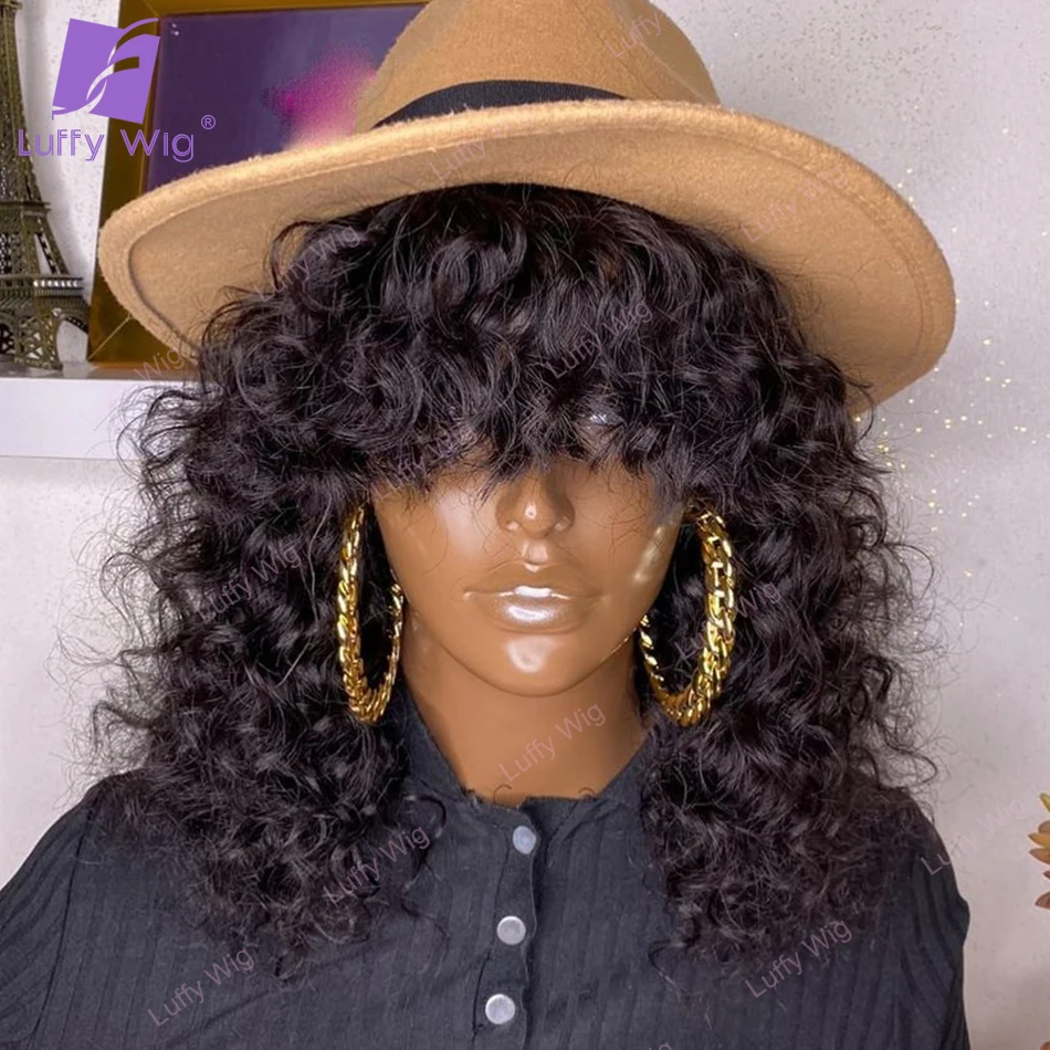 Парики из кудрявых человеческих волос с челкой, бразильские волосы ...