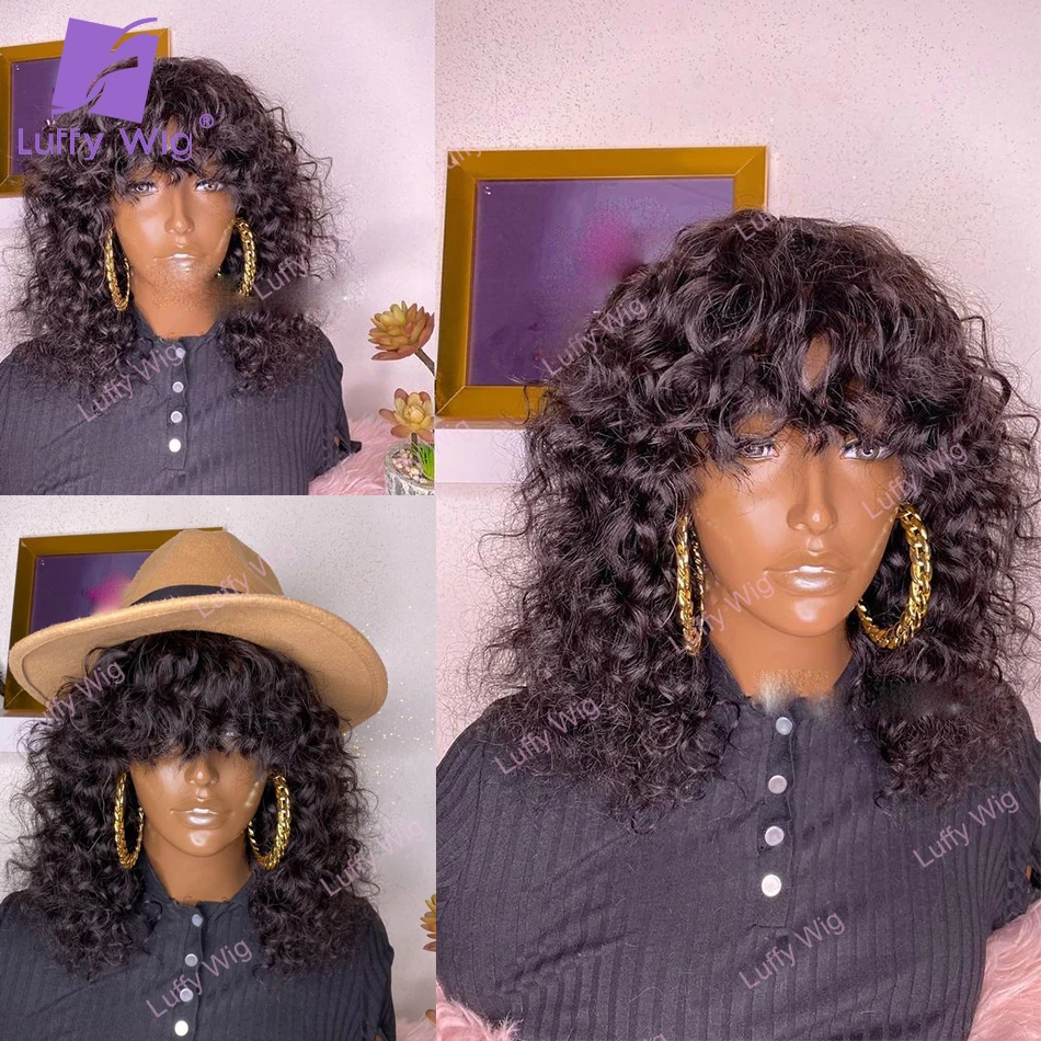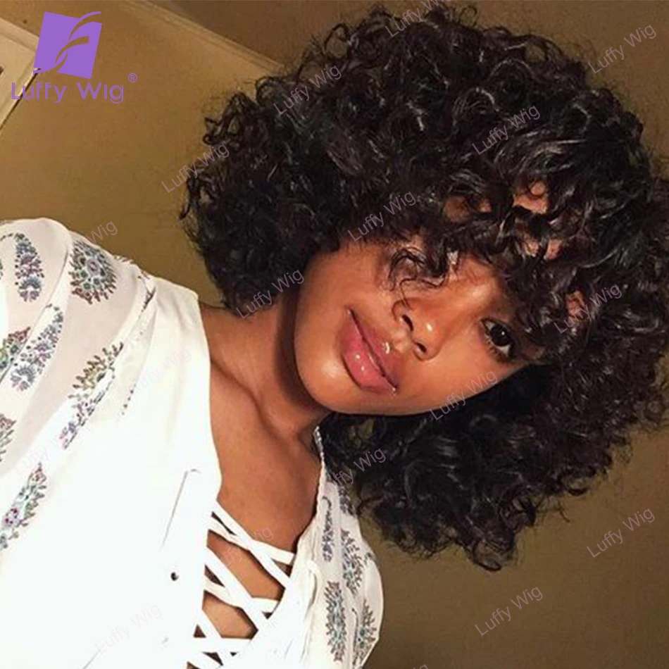 200 плотные Короткие вьющиеся человеческие волосы, парики с челкой,...