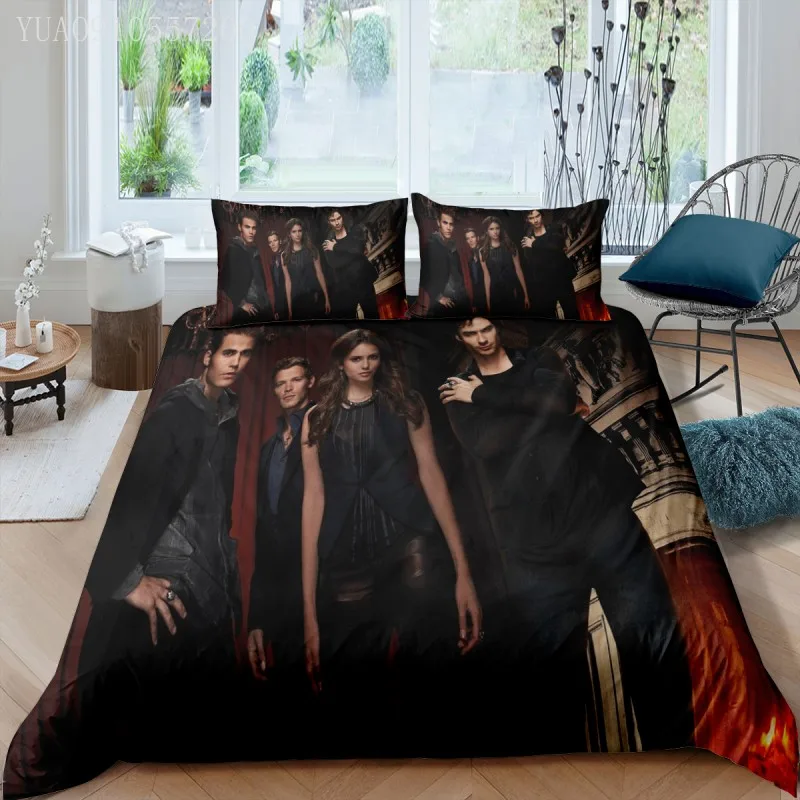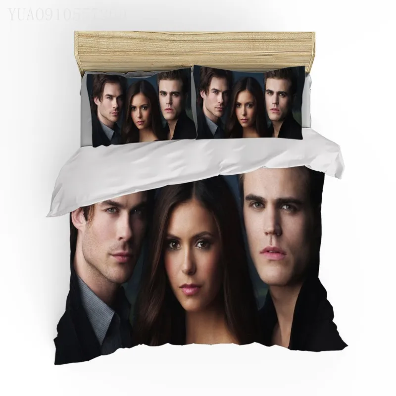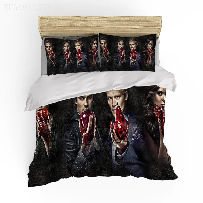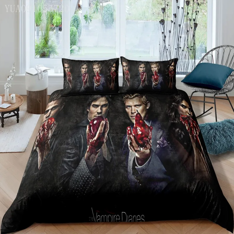 Комплект постельного белья с одеялом, Детский комплект постельного белья с 3D-принтом Дневники вампира, пододеяльник с наволочками, размер Twin Queen