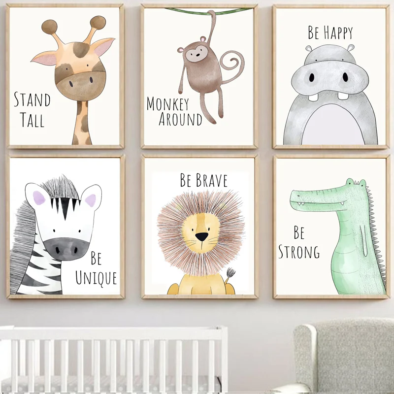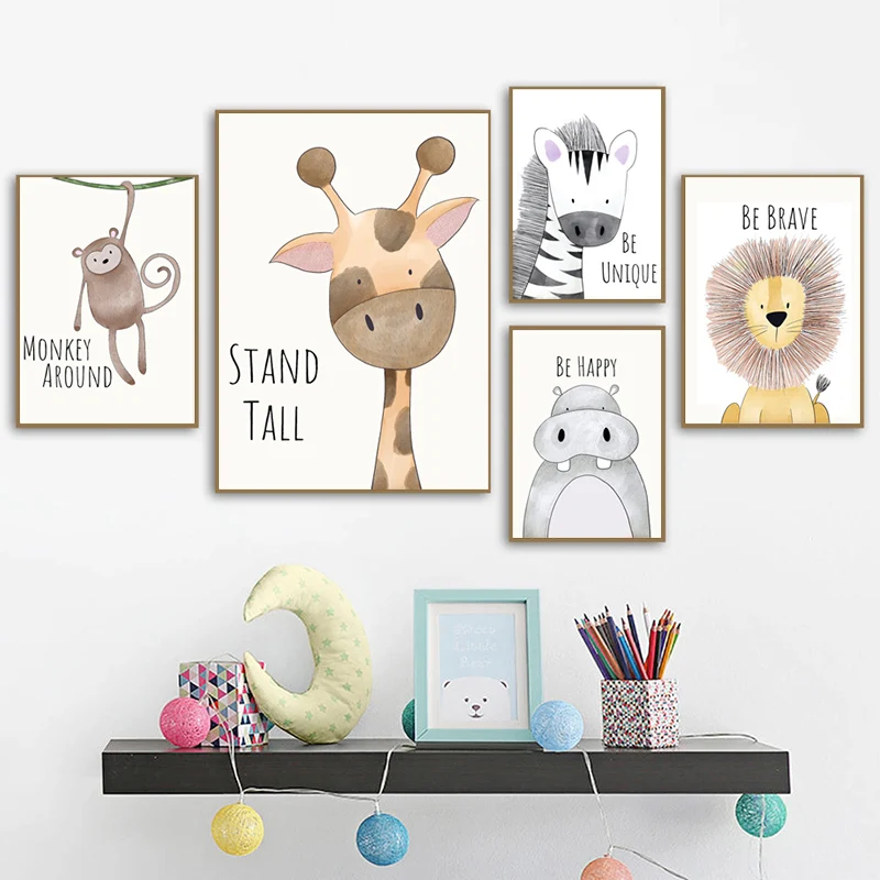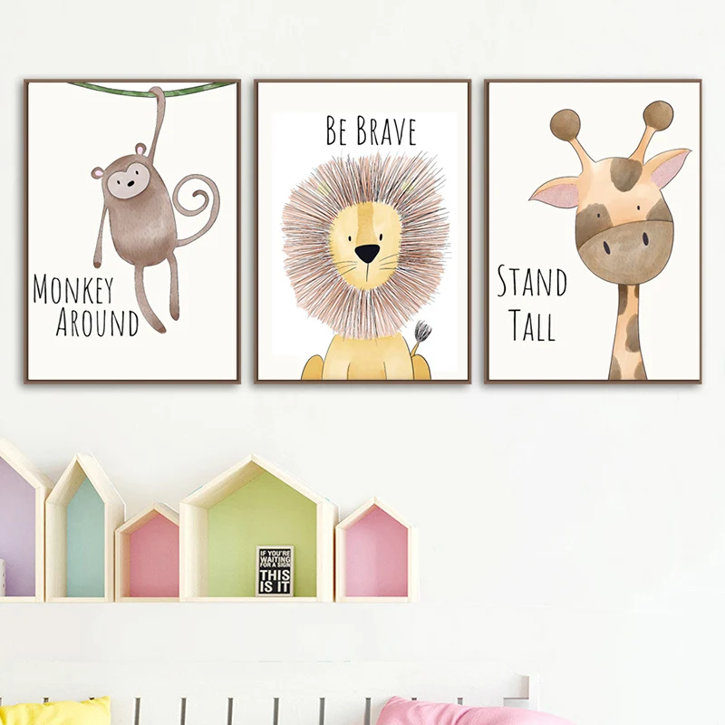 Милый мультяшный постер с животными, декоративная картина, Будьте смелы, будьте сильны, детская комната, детский сад, холст, картина, настенные художественные принты