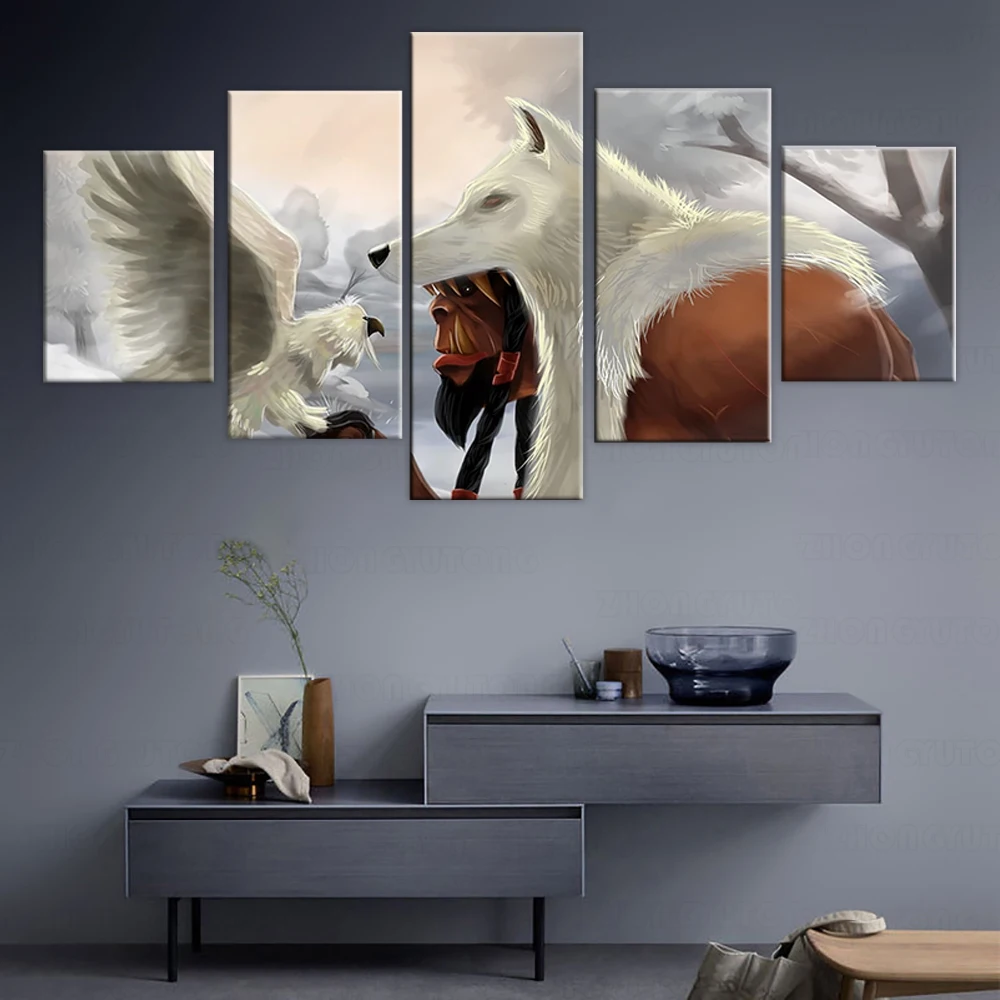Модульная Картина на холсте для домашнего декора, 5 шт., WOW Warcraft DOTA 2, Классическая игра, картина, постер на стену для дома, холщовая рамка