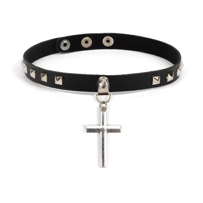 Готическом стиле инди-серебро Цвет крест подвеска, ожерелье, чокер, цепочки для женщин E девушка гранж эстетику Пряжка воротник аксессуары ювелирные изделия