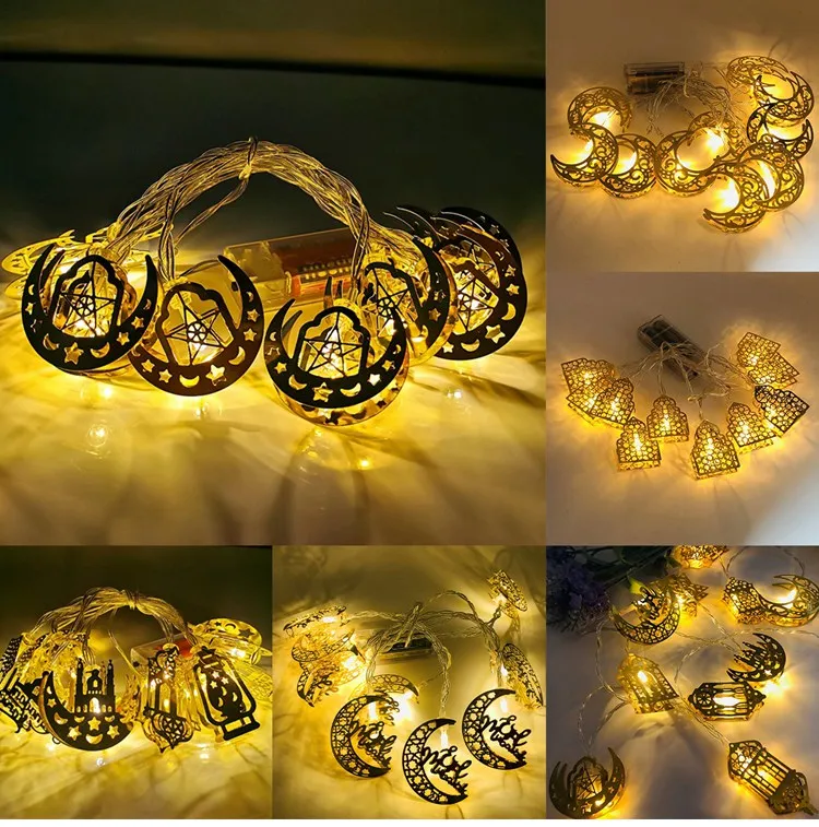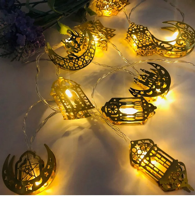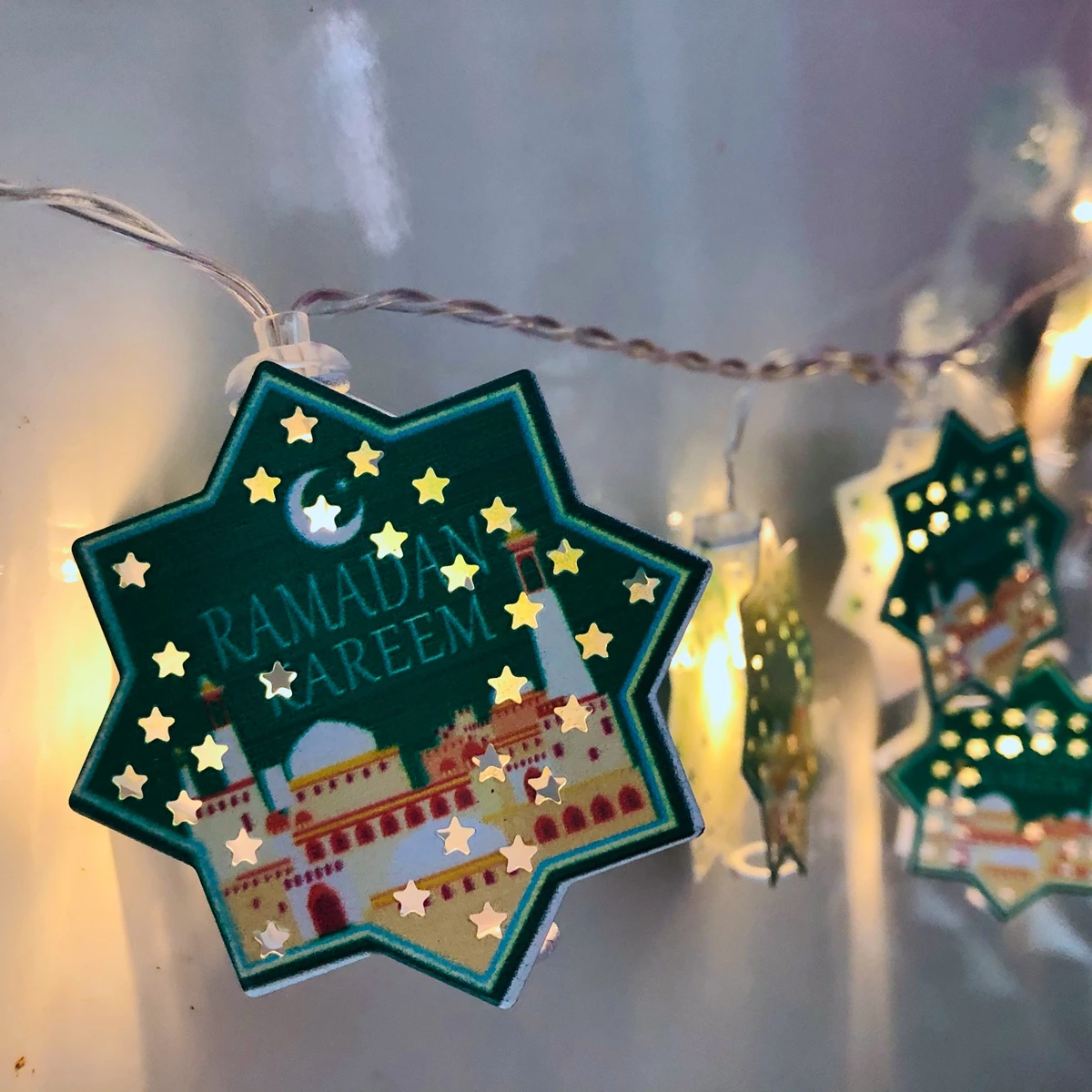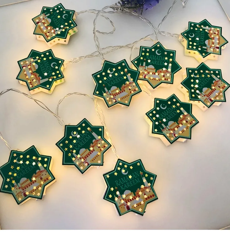 10 Огни Рамадана украшение Луна Звезда светодиодные гирлянды ИД Муб...