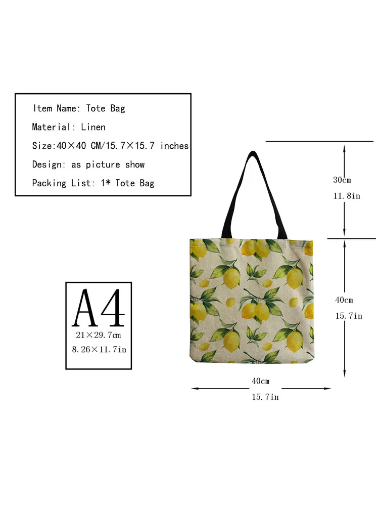 Складная вместительная сумка-тоут, экологически чистая Сумочка на плечо с лимонным принтом, освежающие цвета, для ежедневного хранения, уличная сумка