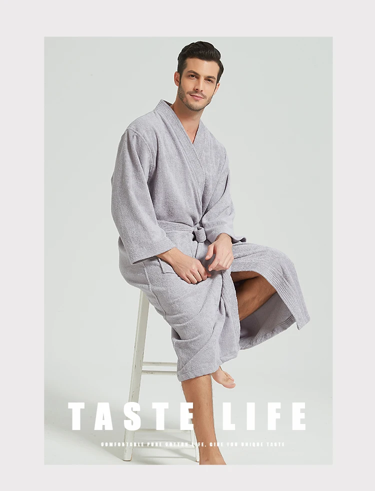 Халат-кимоно мужской из 100% хлопка, махровое полотенце, плотная те...