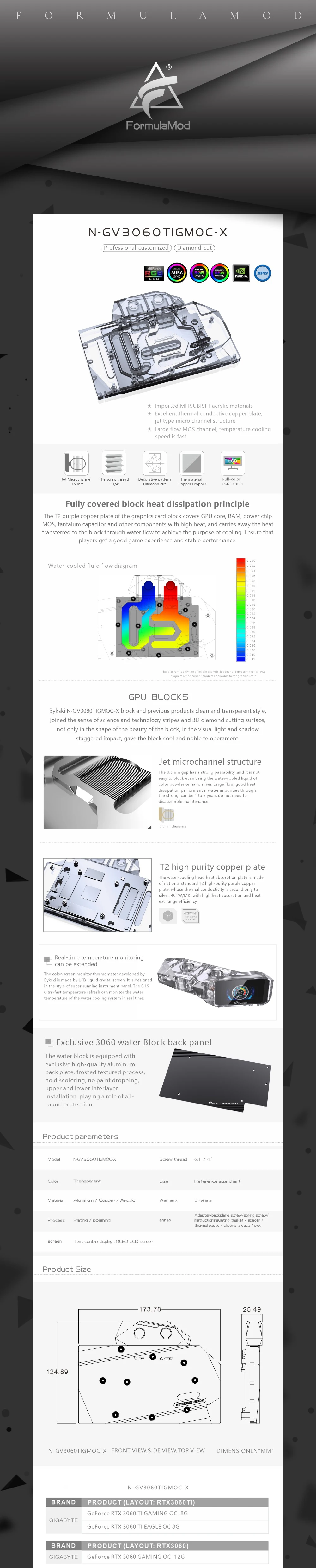 Блок водяного охлаждения Bykski 3060ti GPU для GIGABYTE RTX 3060TI GAMING OC 8G, GPU Cooler, жидкостное охлаждение, N-GV3060TIGMOC-X