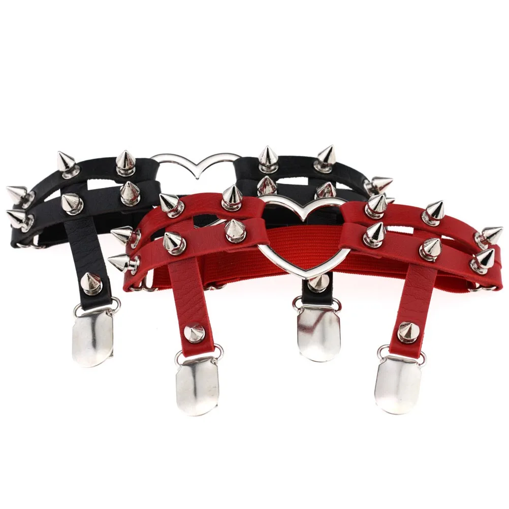 Женские подвязки с шипами в форме сердца, эластичная подвязка на бедро для девушек, металлическая подвязка с шипами, готические ювелирные изделия в стиле панк и Готика