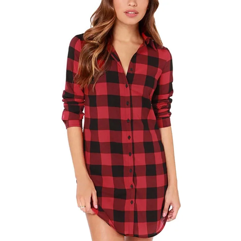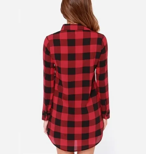 Женская клетчатая рубашка с длинным рукавом, красно-белая длинная блузка в клетку, LBD1545, 2021