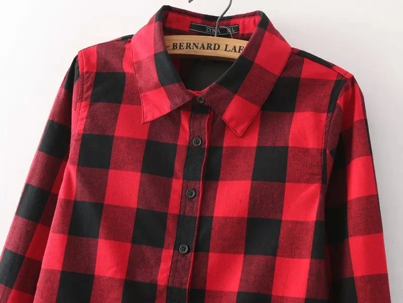 Европа Америка новые женские блузки с длинным рукавом Блузка рубашка в клетку длинные блузы одежда vestidos LBD1545