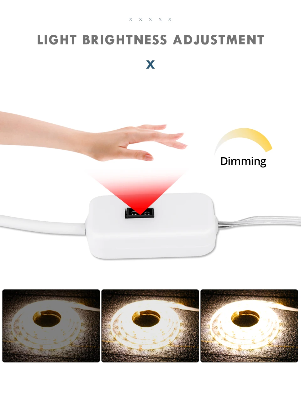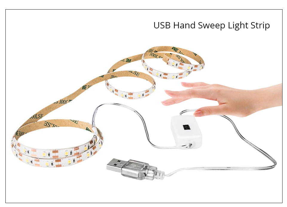 Светодиодная лента с регулируемой яркостью, LED лампа с датчиком движения рук и переключателем, Диодная лента сделай сам для кухни, гардероба, кабинета, подсветки, 1 м-5 м, 5 в постоянного тока