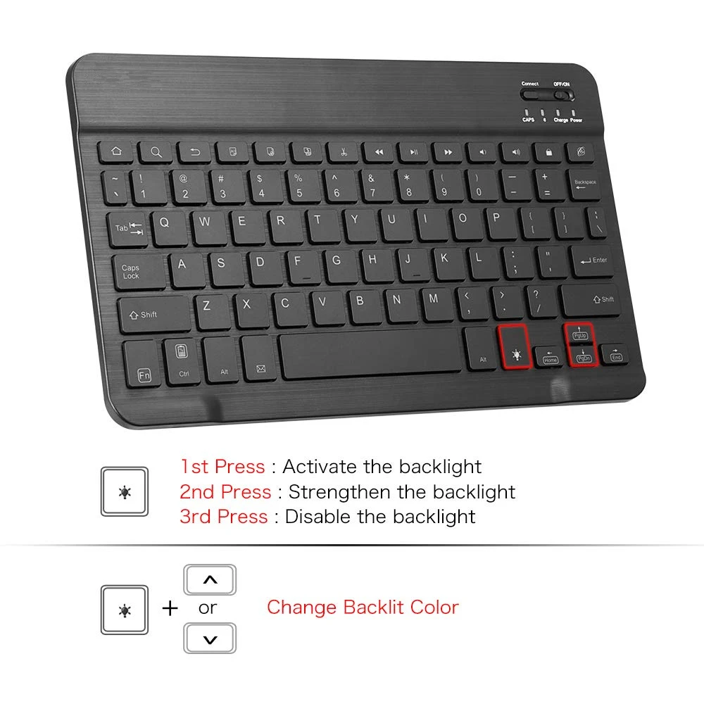 Ультратонкая беспроводная клавиатура с русскойиспанскойАрабской раскладкой и светодиодной подсветкой 7 цветов для iPad mini 7,9 дюйма