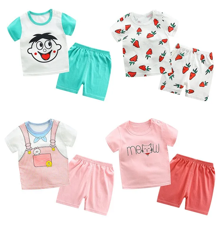 Новинка 2021, комплект детской одежды, летняя повседневная футболка для мальчиков и девочек + шорты, комплект из 2 предметов, детский комплект одежды с мультяшным принтом
