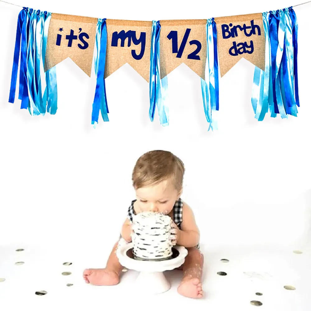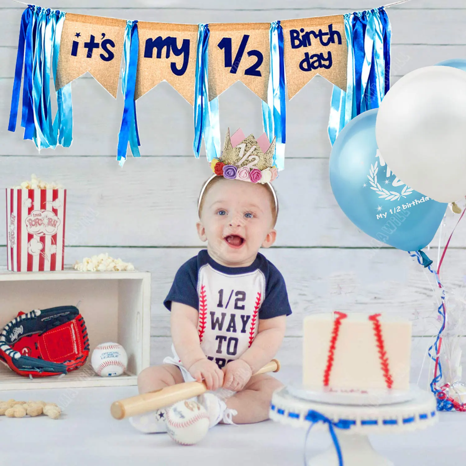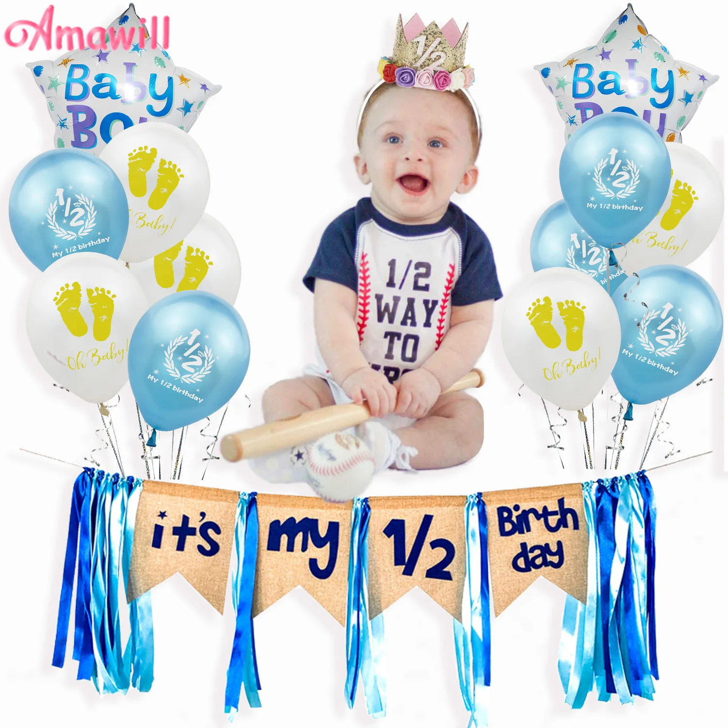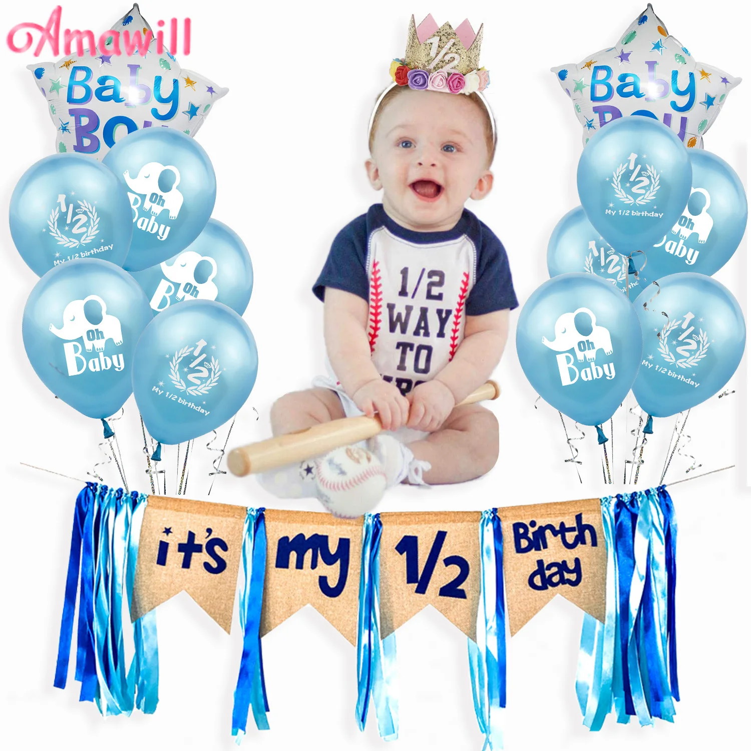 Полдня рождения, украшения, комплект шариков, мой 1/2, день рождения, шары, баннер, шляпа, 6 месяцев, детский душ, 1/2, товары для дня рождения, 75D
