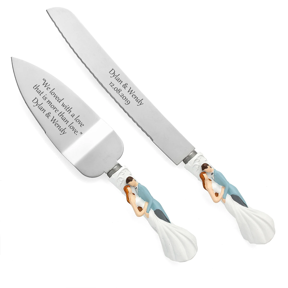 Описание Набор ножей для свадебного торта и серверов для жениха и невесты. Кусочек неба станет вашим, когда вы запечатлите свою особую традицию нарезки тортов, используя наши свадебные наборы для сервировки тортов. Этот набор серверов будет персонализирован до 3 строк текста, чтобы запомнить ваш особый день.