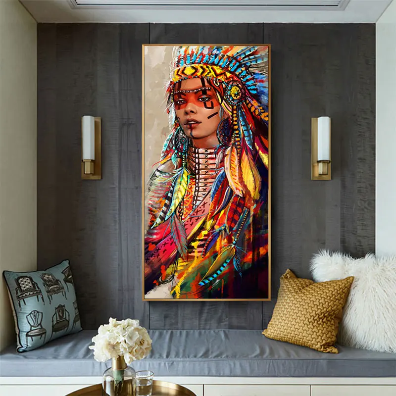 Акварельный абстрактный индийский портрет, холст, живопись, постеры и принты скандинавские настенные художественные картины для гостиной