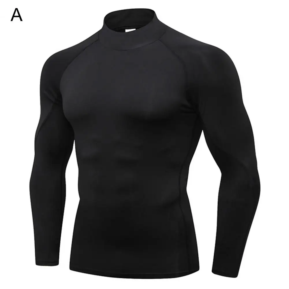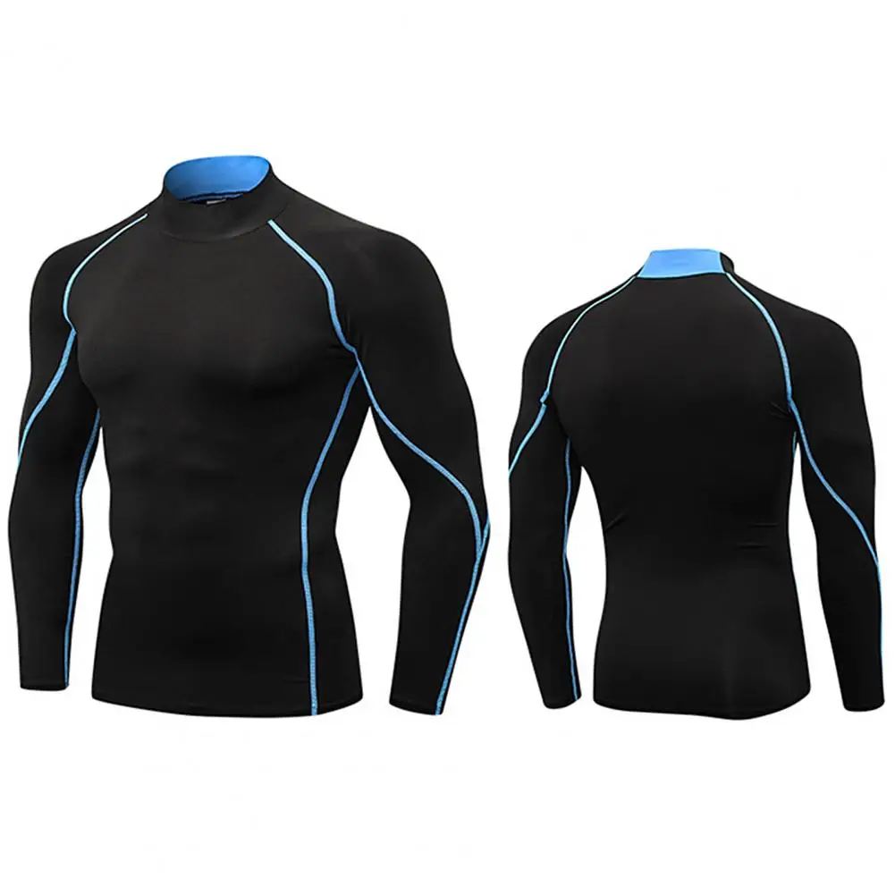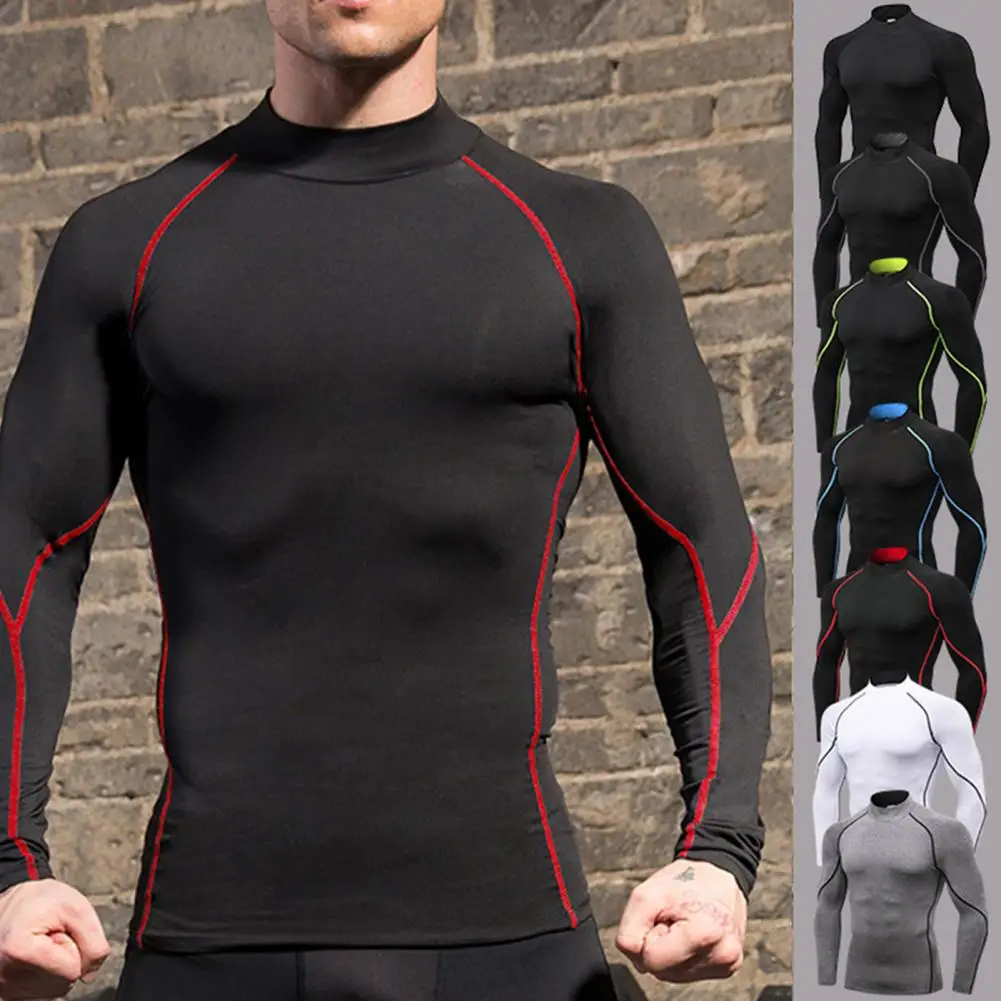 Мужская Осенняя Спортивная футболка с длинным рукавом и высоким воротником, термобелье, Топ