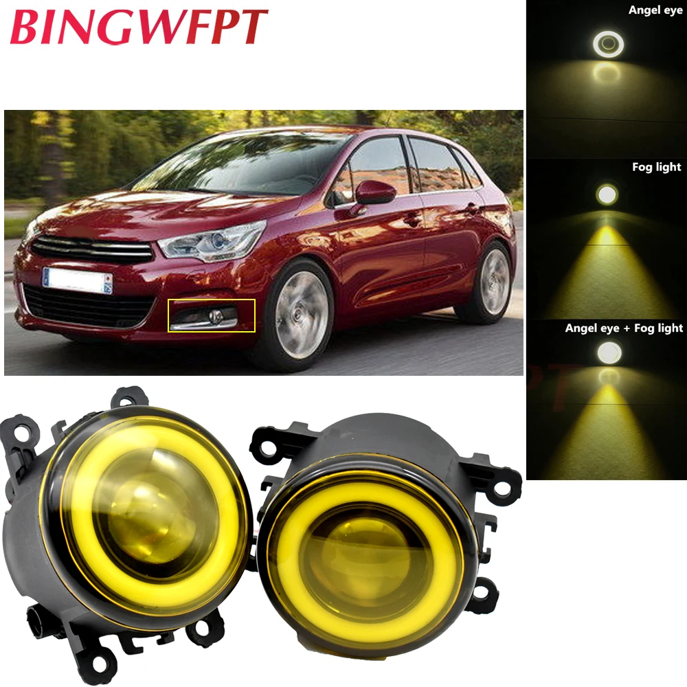 Противотуманные фары в сборе, 2 шт., светодиодные противотуманные фары, ангельский глаз, 12 В, для Citroen C4 LA _ LC _ 2004 2005 2006 2007 2008 2009 2010 2011