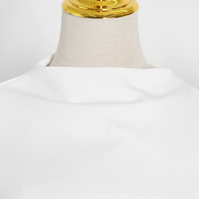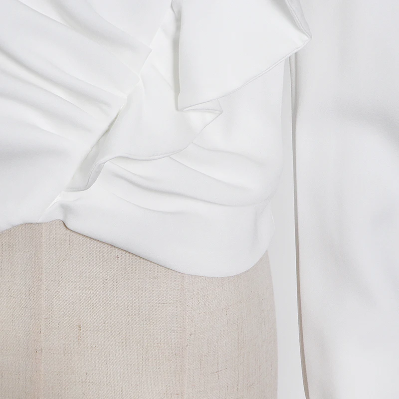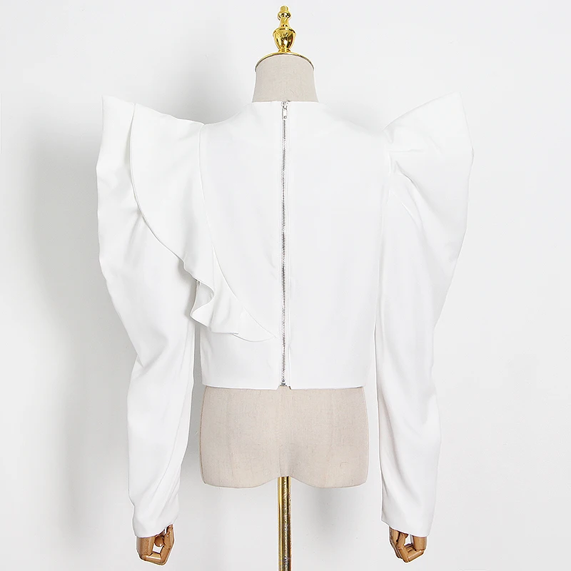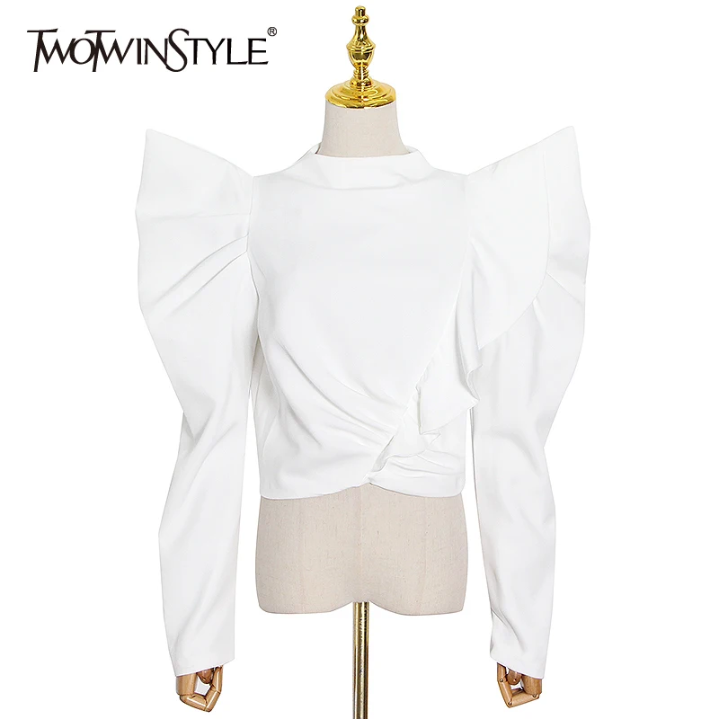 Женская блузка с оборками TWOTWINSTYLE, Весенняя повседневная короткая блузка составного кроя с воротником-стойкой и длинными рукавами