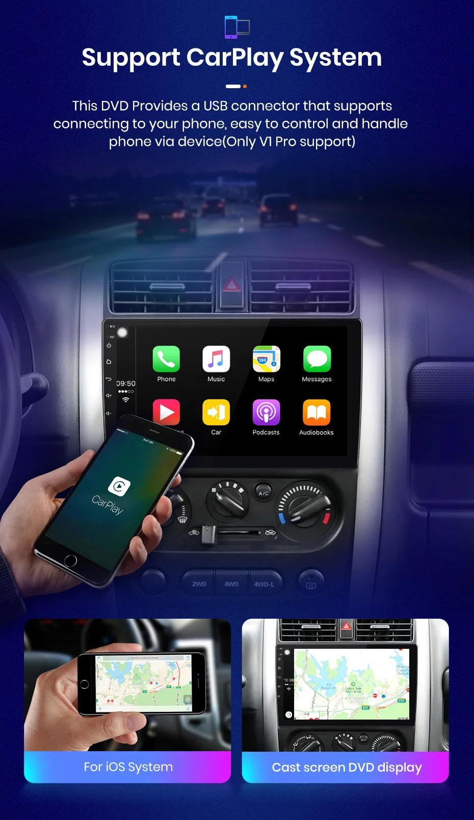Support AI voice controlAllow you to make phone calls, navigate, play music... (Optional)