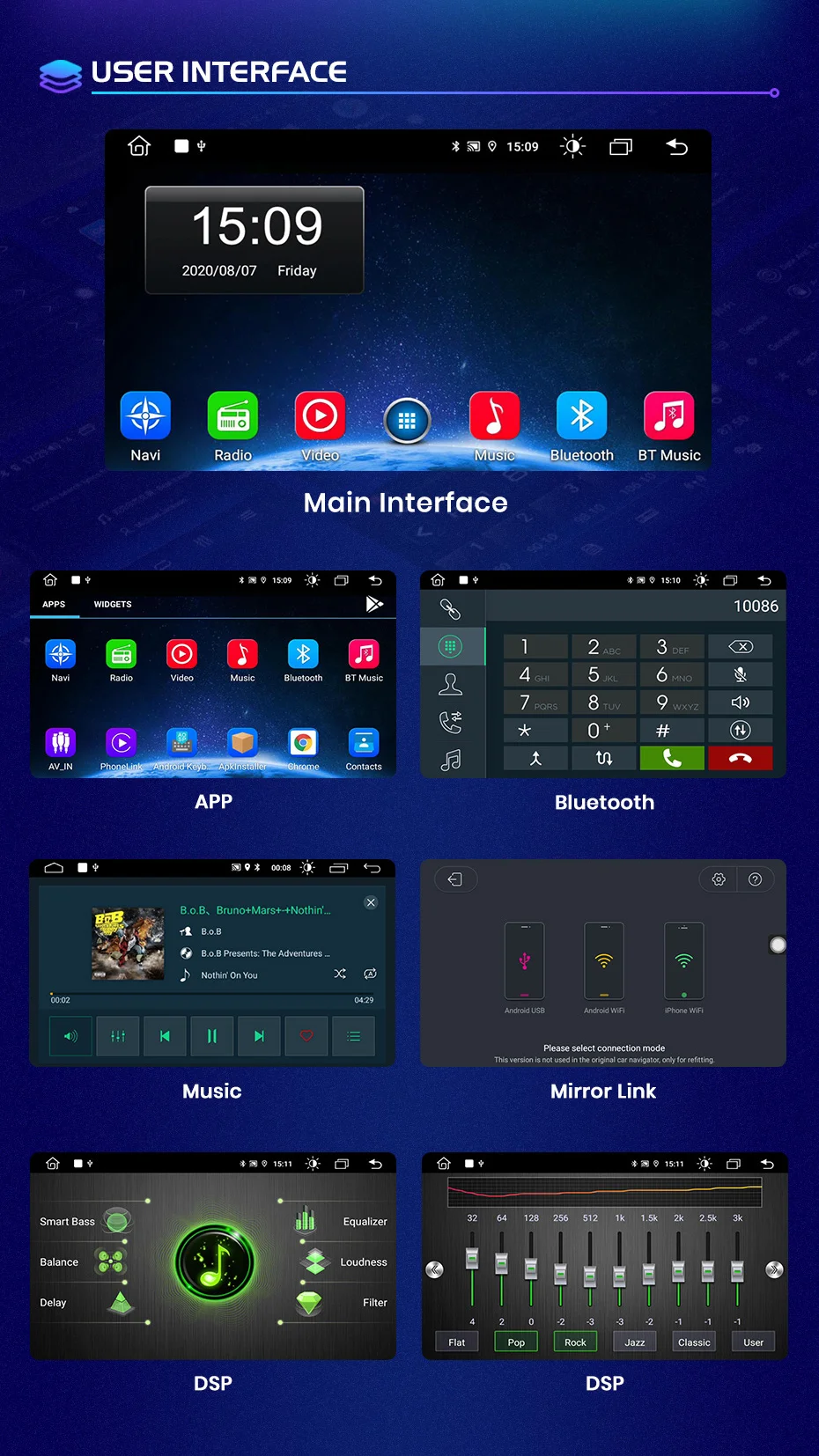 Этот DVD обеспечивает usb-разъем, который поддерживает подключение к телефону, легко управлять и обрабатывать телефон через устройство; Он называется ZLINK в системе;