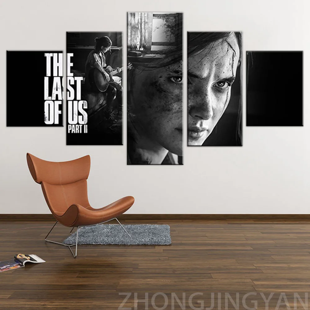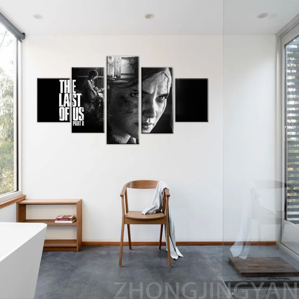 5 шт. HD черно-белые настенные картины Элли последняя часть США 2 Игра постер художественные картины на холсте для домашнего декора рамка