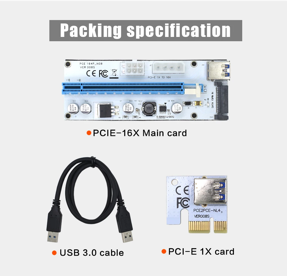TISHRIC PCI Express Riser Card 4/6/15 Pin Интерфейс Riser Card VER 008S адаптер 1X к 16X USB3.0 3 в 1 расширитель Mining Miner