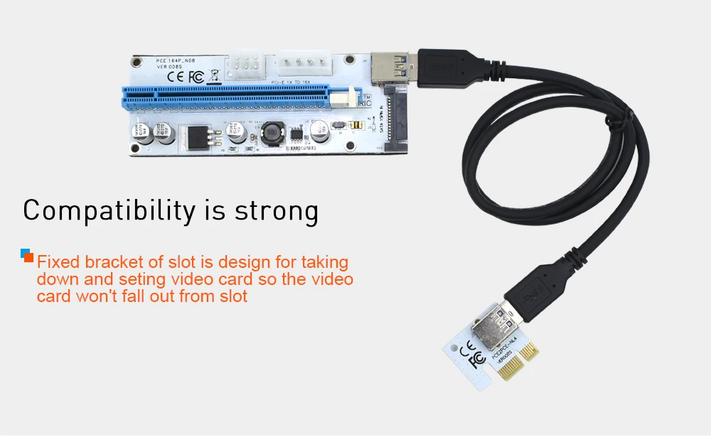 Новый дизайн 008S более изысканный, ближе к пользователю Три разъема питания, что дает вам больше возможностей (Три интерфейса питания не могут быть использованы одновременно, только один из них может быть выбран.) 1: четыре одноцветных конденсатора FP, источник питания видеокарты будет более стабильным и безопасным 2: Фиксированный кронштейн слота предназначен для снятия и установки видеокарты, поэтому видеокарта не выпадет из слота 3: 6-контактный интерфейс 4: 4-контактный интерфейс 5:2017 новые функции. Увеличенный светодиодный индикатор, когда линия расширения видеокарты работает. Светодиодный Яркий желтый светильник 6:15PIN интерфейс для укрепления источника питания, уменьшения нагрузки на материнскую плату 7: мягкий кабель удобен в использовании, вы можете положить его куда угодно 8:PCI-E разъем обеспечивает Многослойные Щит кабели, так что он может подключаться к 3 м кабель без sianal затухания 9: охлаждающее покрытие для защиты вашего устройства 10: задняя часть печатной платы применяется черная огнестойкая пена EVR