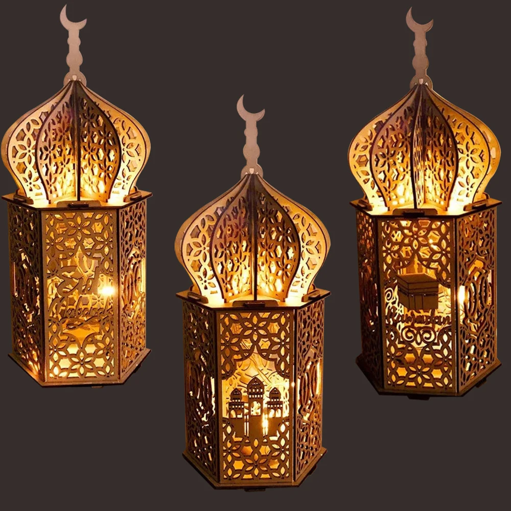 Деревянные светильник ные свечи Рамадан ИД Мубарак украшения для до...