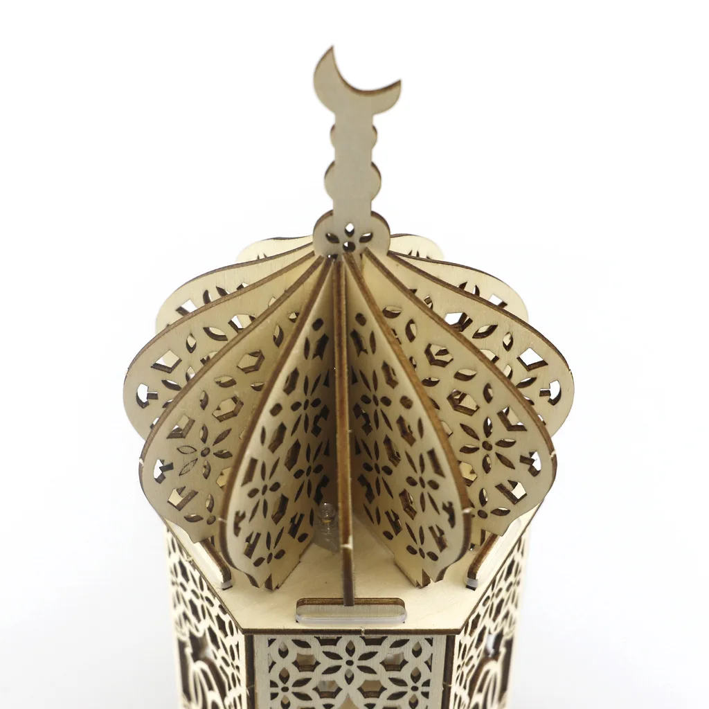 Деревянные Рамадан ИД Мубарак украшение храм Луна светодиодный свеч...