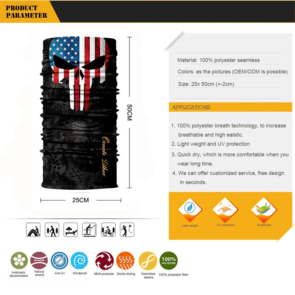 3D маска Карателя, бесшовная бандана, армейская Военная маска для лица, Спортивная шея, теплые гетры, многофункциональный головной убор, Балаклава, велосипед, мужской