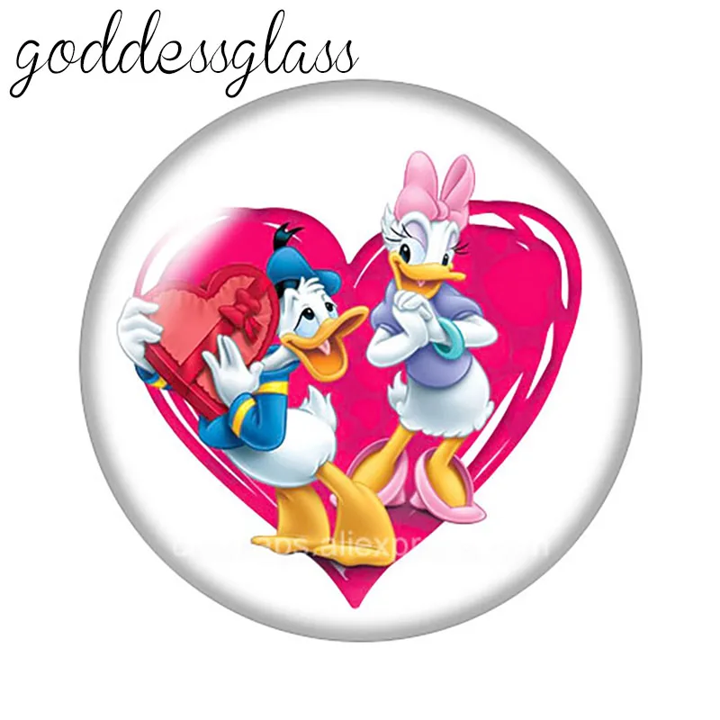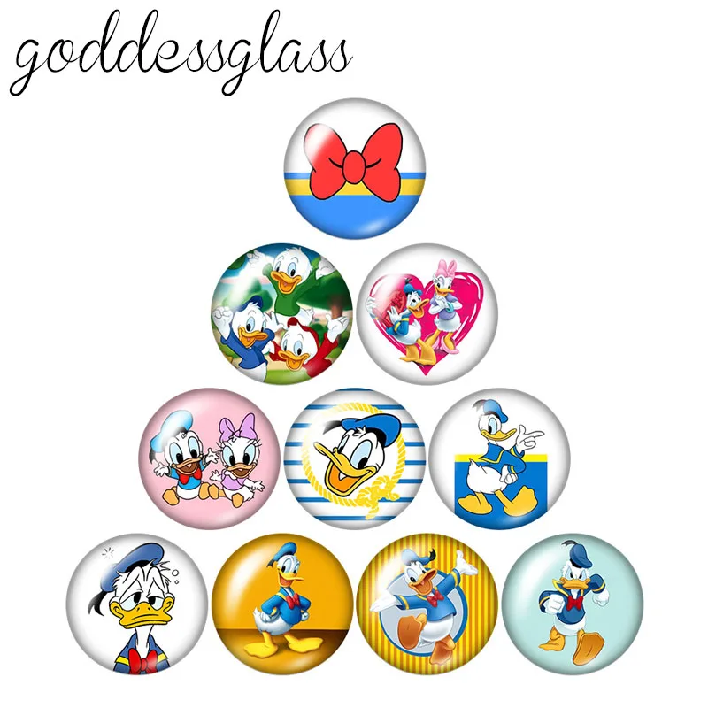 Disney милый Дональд фаунтлерой утка Дейзи 10 шт. 12 мм18 мм20 мм25 мм кабошоны круглые фото кабошоны разрисованные изделия из стекла с плоской задней частью Цепочки и ожерелья, украшения своими руками