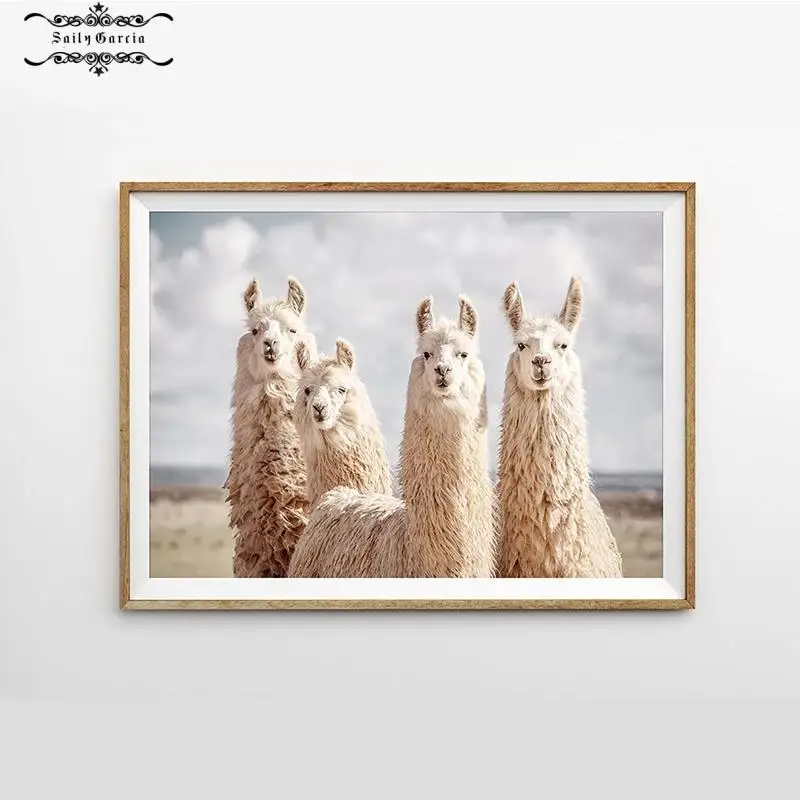 Плакат с забавными животными, альпака, лама, холст, принты, черно-белая живопись, картины на стену для детской, современный домашний Настенный декор