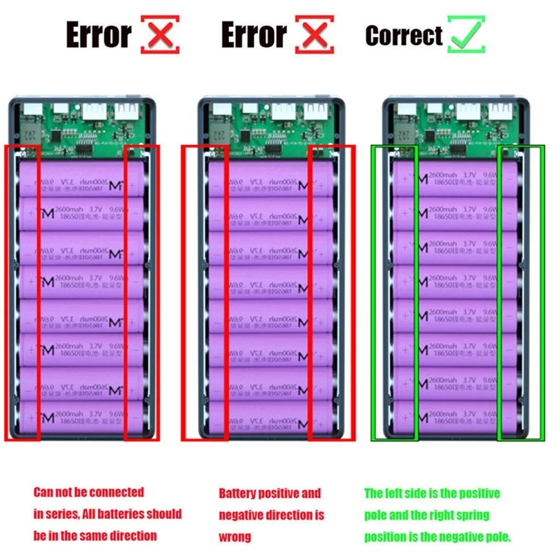 Описание на 100% абсолютно новый и высокое качество. Особенность: Изготовлен из высококачественного материала, износостойкий и прочный. Цифровой ЖК-дисплей, позволяющий легко контролировать емкость аккумулятора в реальном времени. Может быть установлен литиевый аккумулятор 16x1865 0. Быстрая зарядка, подключи и работай, длительное время зарядки. Компактный дизайн, удобство переноски. Светильник дизайн очень легко носить с собой. Совместим с USB-устройствами 99%, такими как смартфоны, планшеты, компьютеры и т. Д. Функция: Защита от температуры, защита от короткого замыкания, защита от сброса, защита от обратного подключения, защита от перегрузки по току, защита от перенапряжения, защита от перегрузки батареи. Дизайн «сделай сам», простой и удобный в использовании. Идеально подходит для путешествий. Только Чехол для внешнего аккумулятора, другие демонстрационные аксессуары на картинке в комплект не входят! Советы: аккумуляторы 18650 не входят в посылка, их необходимо приобретать отдельно. Можно использовать только аккумулятор 18650, положительный электрод которого плоский верх. Пожалуйста, обратите внимание на направление положительного и отрицательного полюсов. Съемный дизайн. Характеристики: Тип товара: чехол для внешнего аккумулятора QC3.0, выход USB: 5 В/3,1 А; 9 В/2,0 А; 12 В/1,5 А, порт с поддержкой быстрой зарядки PD, И поддержка ввода и вывода порта. Поддержка протокола быстрой зарядки: QC2.0/QC3.0/PD2.0/PD3.0/FCP/AFC/SFCP/MTK PE + 1,1 & 2,0/USB C DRP/BC1.2 аккумулятор: 16x18650 (не входит в комплект) материал: пластик Размер: 186x80x4 мм Цвет: белый, черный (опционально) Количество: 1 шт. Примечание: переход: 1 см = 10 мм = 0,39 дюйма допускается погрешность в 0-1 см из-за ручного измерения. Пожалуйста, убедитесь, что вы не против, прежде чем сделать заказ. Из-за разницы между различными мониторами изображение может не отражать реальный цвет изделия. Спасибо! Посылка: 1 x Чехол для внешнего аккумулятора
