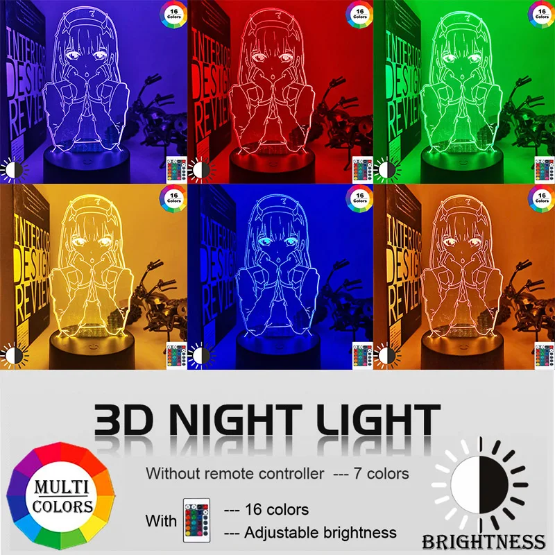 Аниме 3d лампа ноль два рисунок ночной Светильник для детей и девоч...