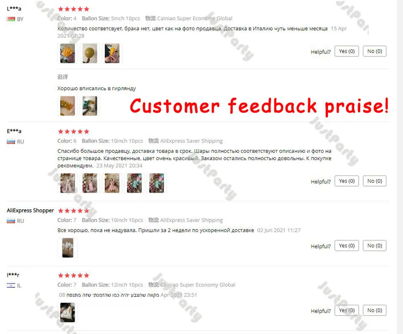Страна: IL Color: 1 Ballon Size: 12inch 10pcs Доставка: Cainiao Super Economy Global 07.05.2021