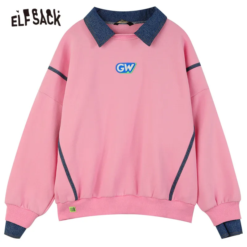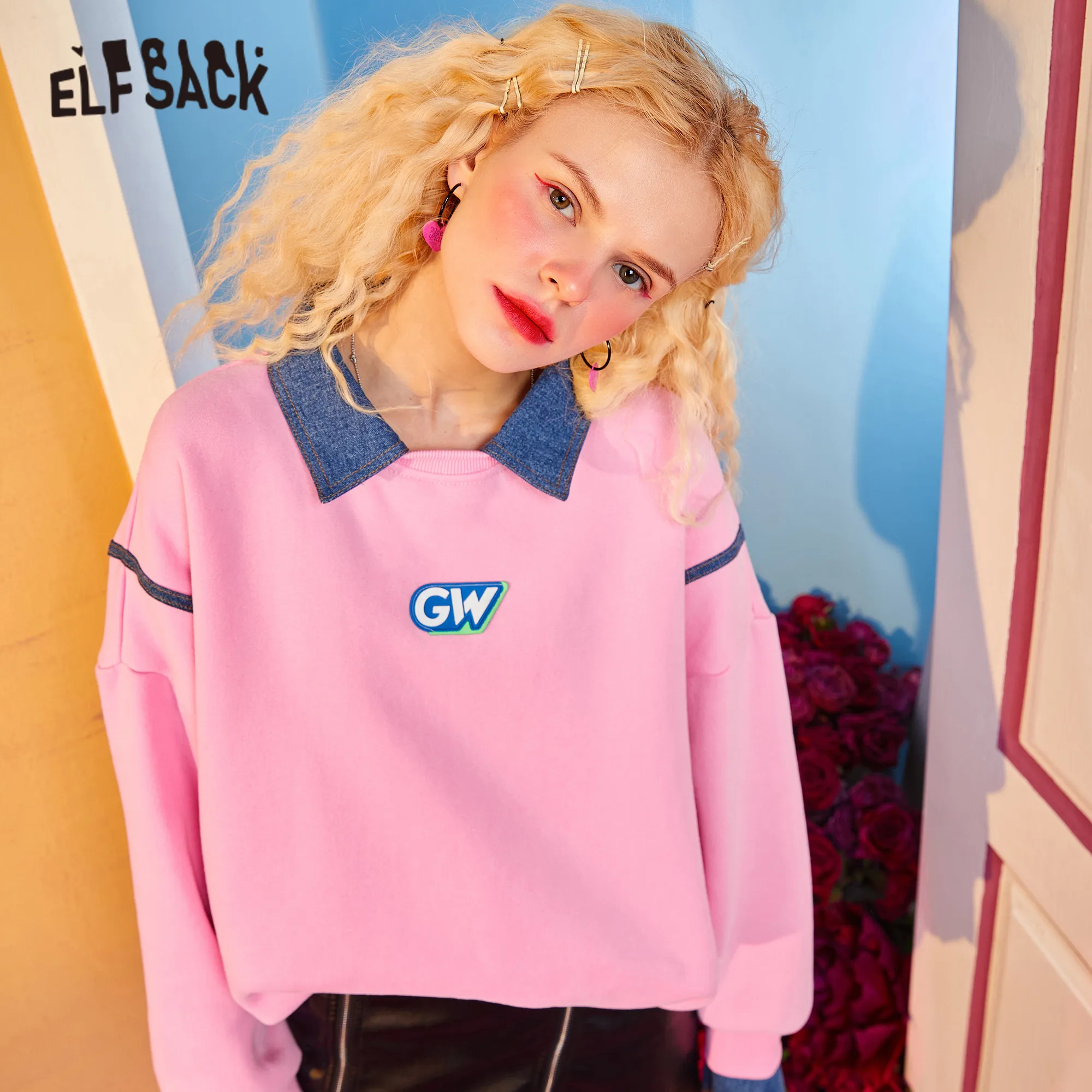 Женский Повседневный пуловер ELFSACK в стиле Харадзюку с аппликацией, зимний лоскутный джинсовый пуловер в Корейском стиле с графическим принтом, 2021