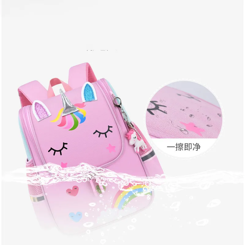 Рюкзак детский нейлоновый, с принтом в виде розового единорога, вод...