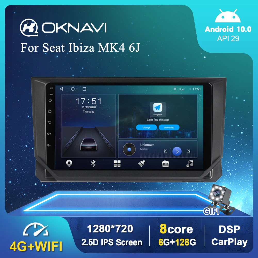 Автомагнитола на Android 10,0 для Seat Ibiza mk4 6j 2017-2020 GPS Видео мультимедийный стерео проигрыватель Carplay DSP WIFI No 2 Din