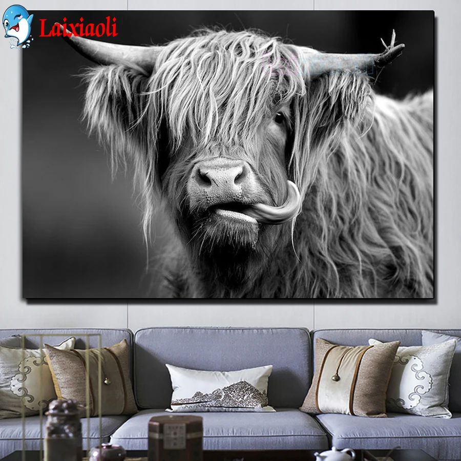 Алмазная вышивка Laixiaoli 5D "сделай сам", горец, корова, квадратная картина, вышивка крестиком, черно-белые животные, мозаика для домашнего декора