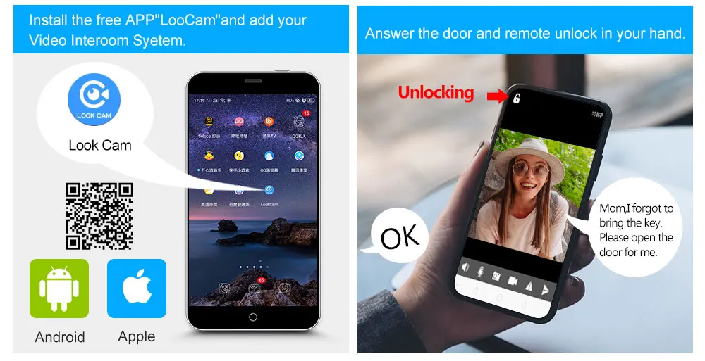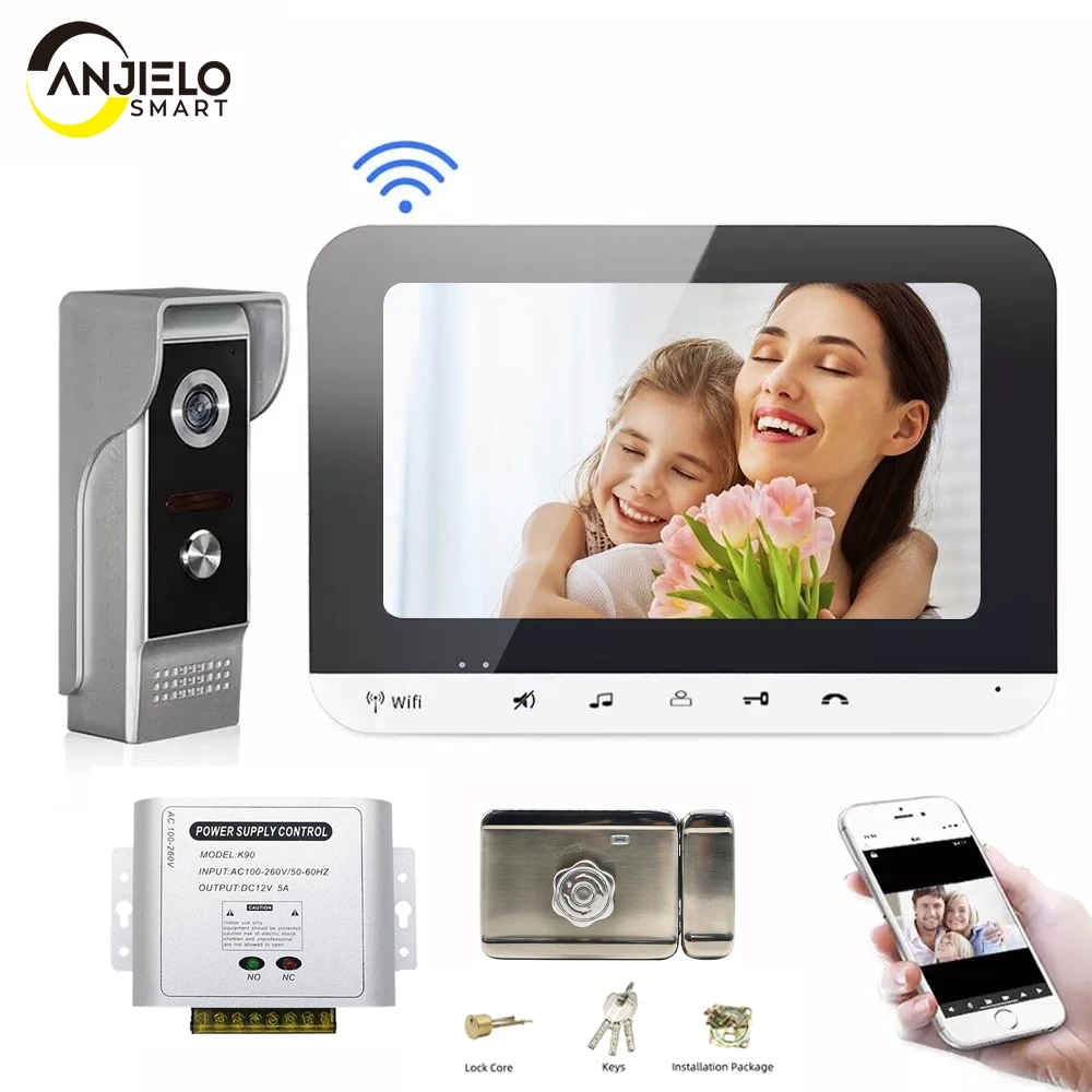 Wi-Fi видеодомофон, система IOSAndroid, умное быстрое приложение, дистанционное управлениеисточник питанияэлектрический замок
