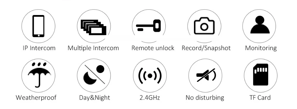 * Наружный блок использует камеру высокой четкости 700TVL, внутренний монитор с функциями монитора, домофона, разблокировки, громкой связи, принимать видео автоматически и не беспокоить функцию.