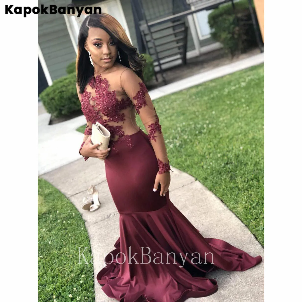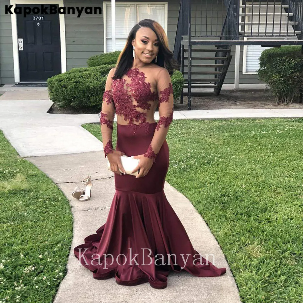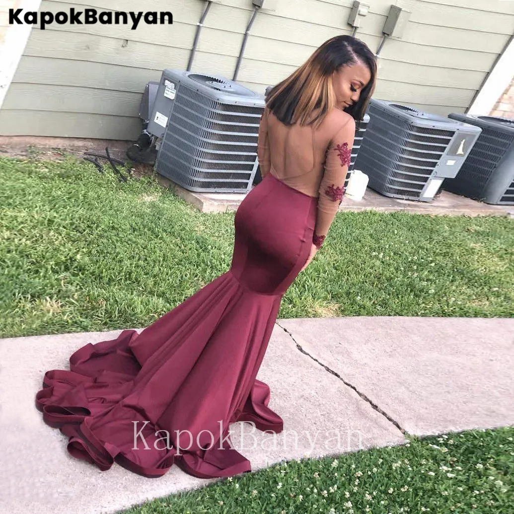 Прозрачная сетка кружевное платье без спинки с длинным рукавом атласные длинные в стиле русалки Выпускные платья Вечерние вечернее платье