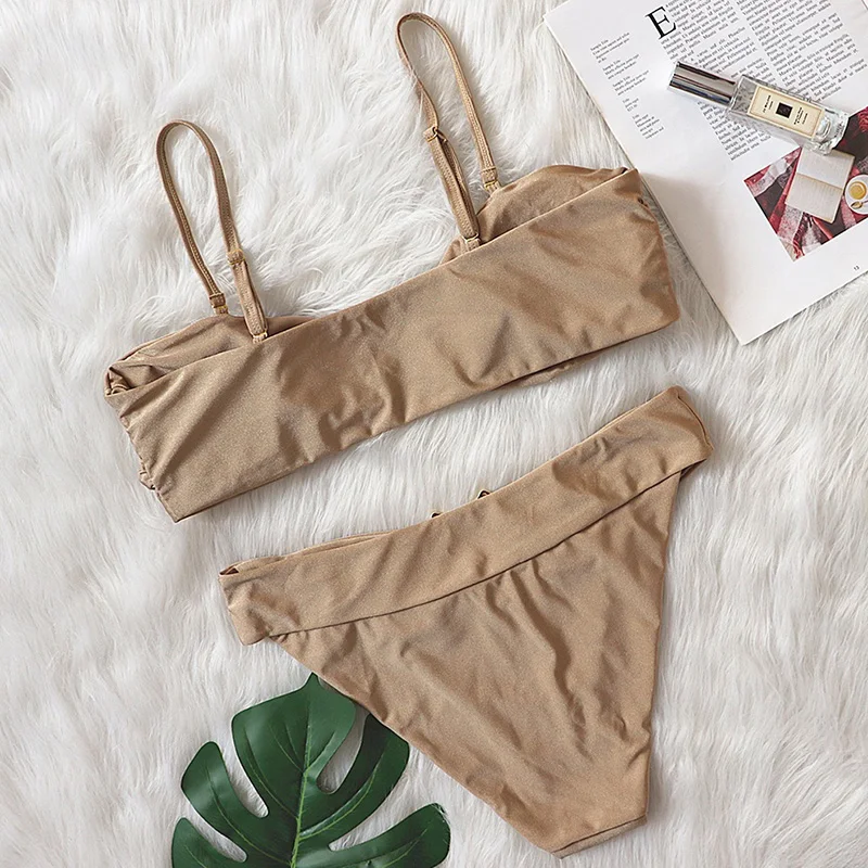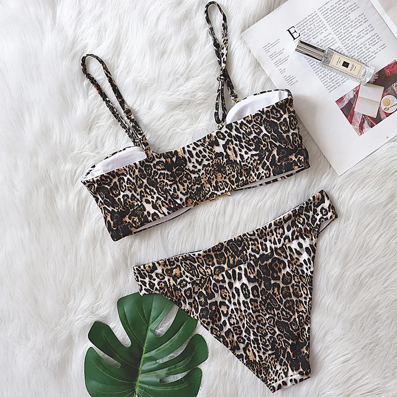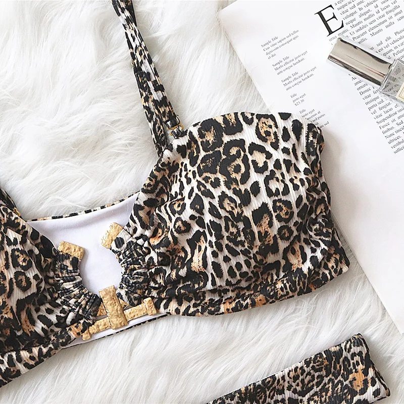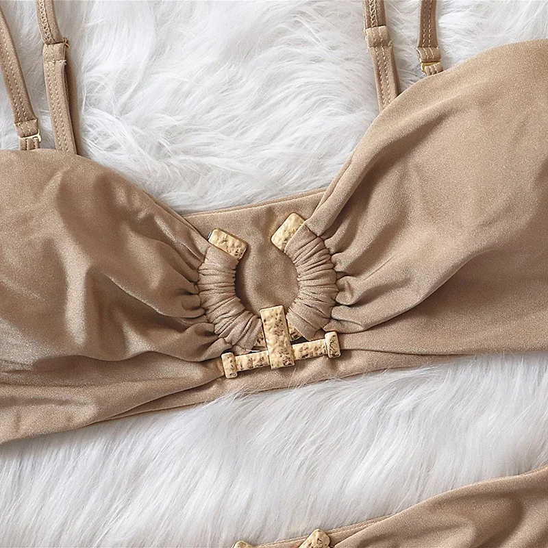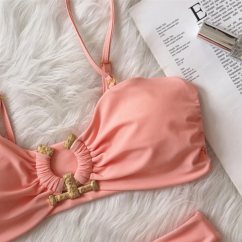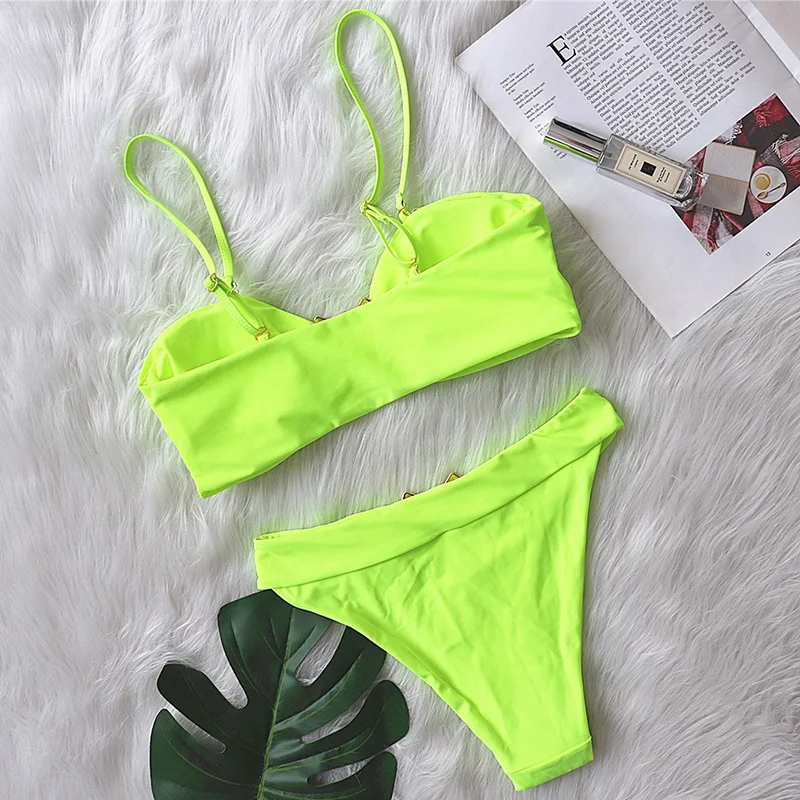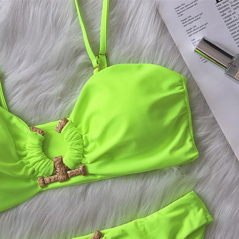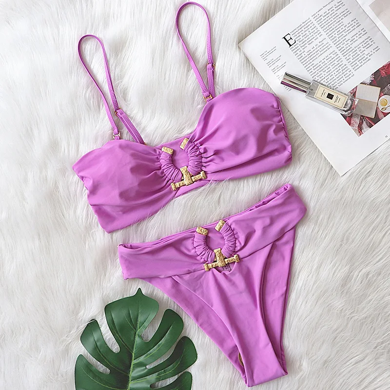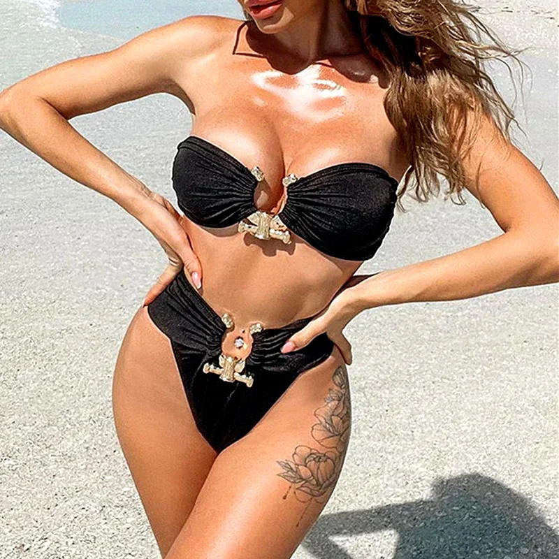 Бикини женское, с высокой талией, со стразами и кольцами, 2021
